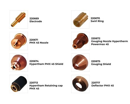 Hypertherm and Other branded consumables are Registered Trademark of the OEM company.Inc. Royal Welding Products & Services Is no way affiliated with the above named manufacturers and their registered trademarks or any patents. Reference to the above named machines, torches, consumables and their part numbers are for convenience only.